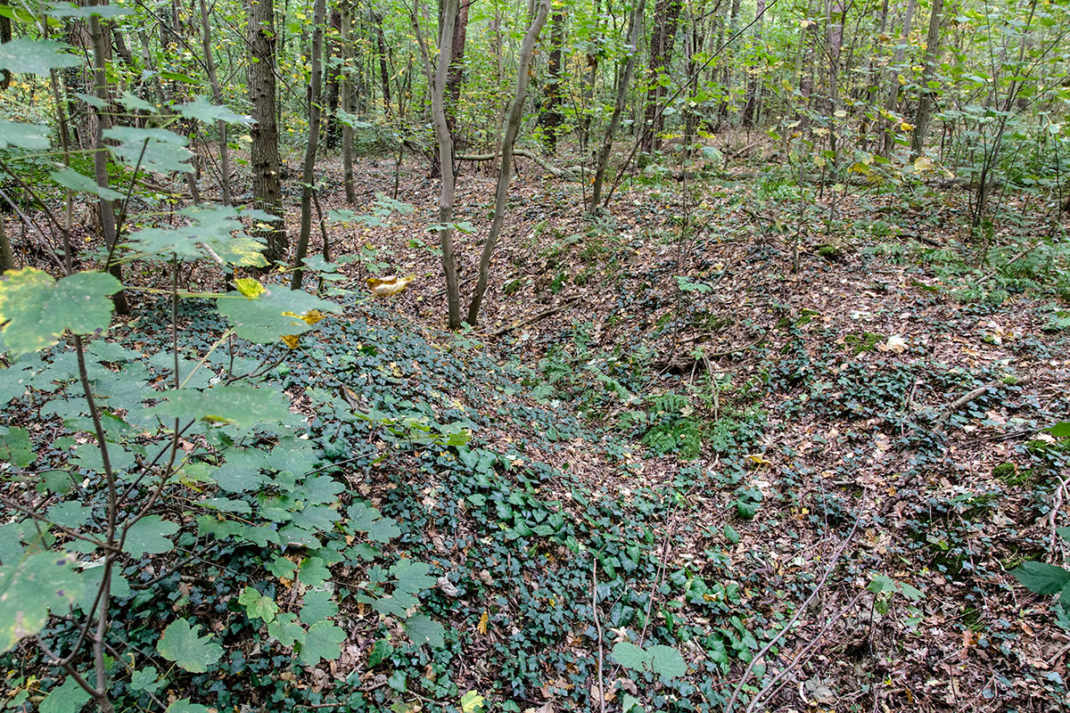 van het leger in het Rijndal op beide oevers, dwars op de rivier, een verdedigingslinie aangelegd. Dit was een strategisch belangrijke positie, omdat het Rijndal een invalsroute vanuit het westen naar de belangrijke wapenindustrie in het Roergebied was. De aanleg vond in de loop van 1916 en in 1917 plaats. De linie bestond uit drie rijen loopgraven achter elkaar met kleine betonnen bunkers en stellingen in de eerste twee rijen. De afstand tussen de rijen was ongeveer 300 meter.Overeenkomstig het Verdrag van Versailles werd de linie in 1921 ontmanteld en werden de bunkers en stellingen door het Franse leger vernietigd. De foto's hierboven tonen resten van loopgraven bij Elten. Ze zijn nu door bos overwoekerd. Hier en daar zijn nog resten van bunkers en andere overblijselen te zien. Een deel van de linie bij Elten ligt nu op Nederlands grond- gebied en is op deze website op de pagina "Buiten de Fronten - Nederland" beschreven. De loopgraven op Nederlands grondgebied zijn deels gerestaureerd en geven een indruk van de oorspronkelijke toestand. Zie aldaar, ook voor een verdere uitleg. |